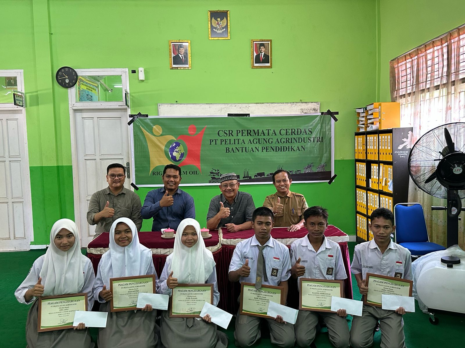 DUMAI (MR) - PT Pelita Agung Agrindustri yang berdomisili di Medang Kampai kembali menyalurkan bantuan beasiswa pendidikan bagi peserta didik SMKN 6 untuk kategori berprestasi dan kurang mampu melalui program CSR Permata Cerdas.
