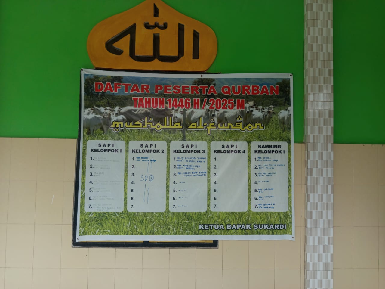 "Ada 3 ekor sapi dan 7 ekor kambing akan disalurkan untuk masyarakat RT 18 dan sekitarnya" Kata Ketua panitia kurban, Sukardi di halaman musala tersebut.