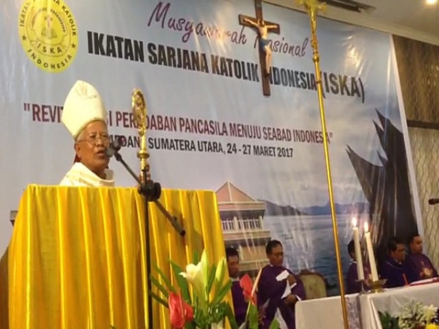 Demikian homili atau khutbah Uskup Agung Medan Monsignore (Mgr) Anicetus Bongsu Sinaga OFMCap, saat pembukaan Musyawarah Nasional Ikatan Sarjana Katolik (Munas ISKA) 2017 di Catholic Center Medan, Jalan Mataram, Kota Medan, Sumatera Utara, Jumat (24/3/2017).