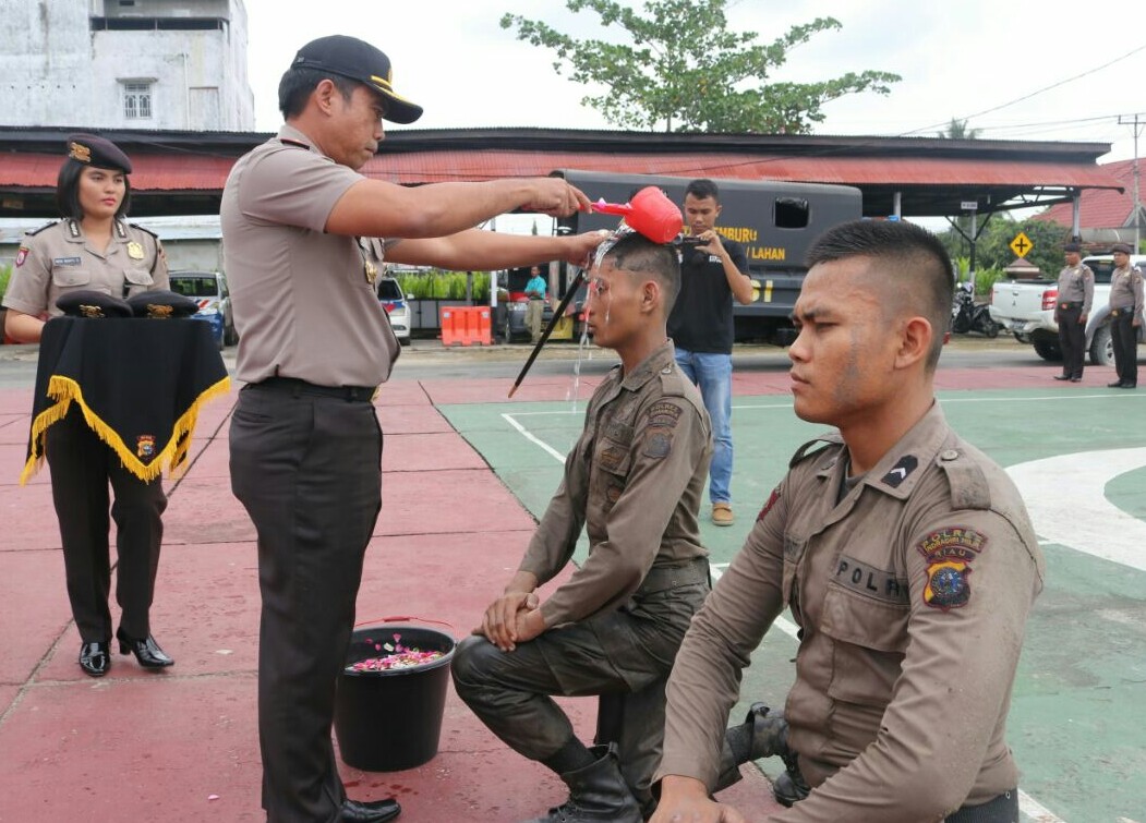 Pada upacara itu, Inspektur Upacara menyiramkan air Sungai Indragiri bercampur kembang sebagai tradisi penerimaan warga baru di Polres Inhil dan dilanjutkan dengan pemasangan Baret Coklat Sabhara kepada dua orang perwakilan Brigadir Remaja.