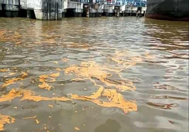 DUMAI (MR) - Lagi-lagi crude palm oil (CPO) milik perusahaan PT. Naga Mas tumpah ke laut tepatnya di Dermaga B PT. Pelindo I Dumai, saat melakukan pembersihan pipa transfer menuju Kapal MT ARK Progress berbendara India.