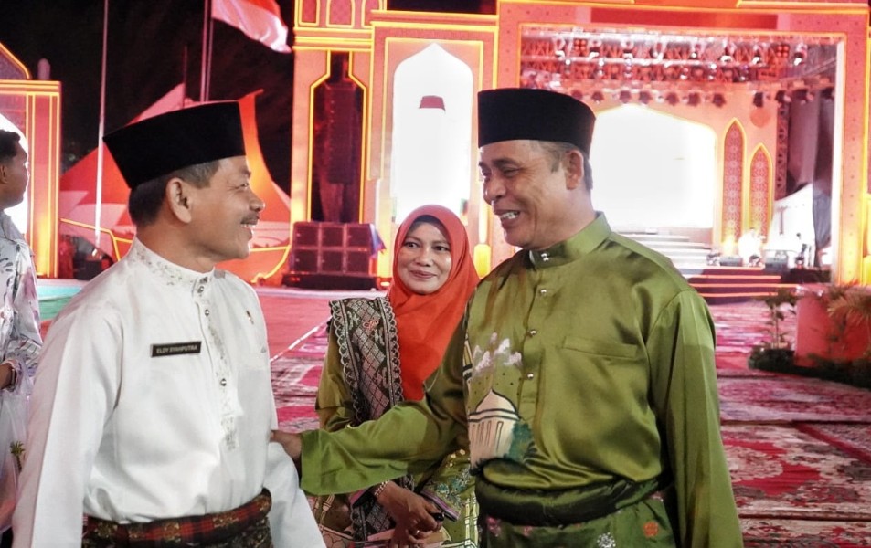 TEMBILAHAN (MR) - Bupati Indragiri Hilir (Inhil) Herman bersama Ketua TP PKK Katerina Susanti dan jajaran Pemerintah Kabupaten Inhil turut menghadiri Malam Puncak Pembukaan Musabaqah Tilawatil Quran (MTQ) ke-43 Tingkat Provinsi Riau yang digelar di Kabupaten Bengkalis, Sabtu (28/6) malam.