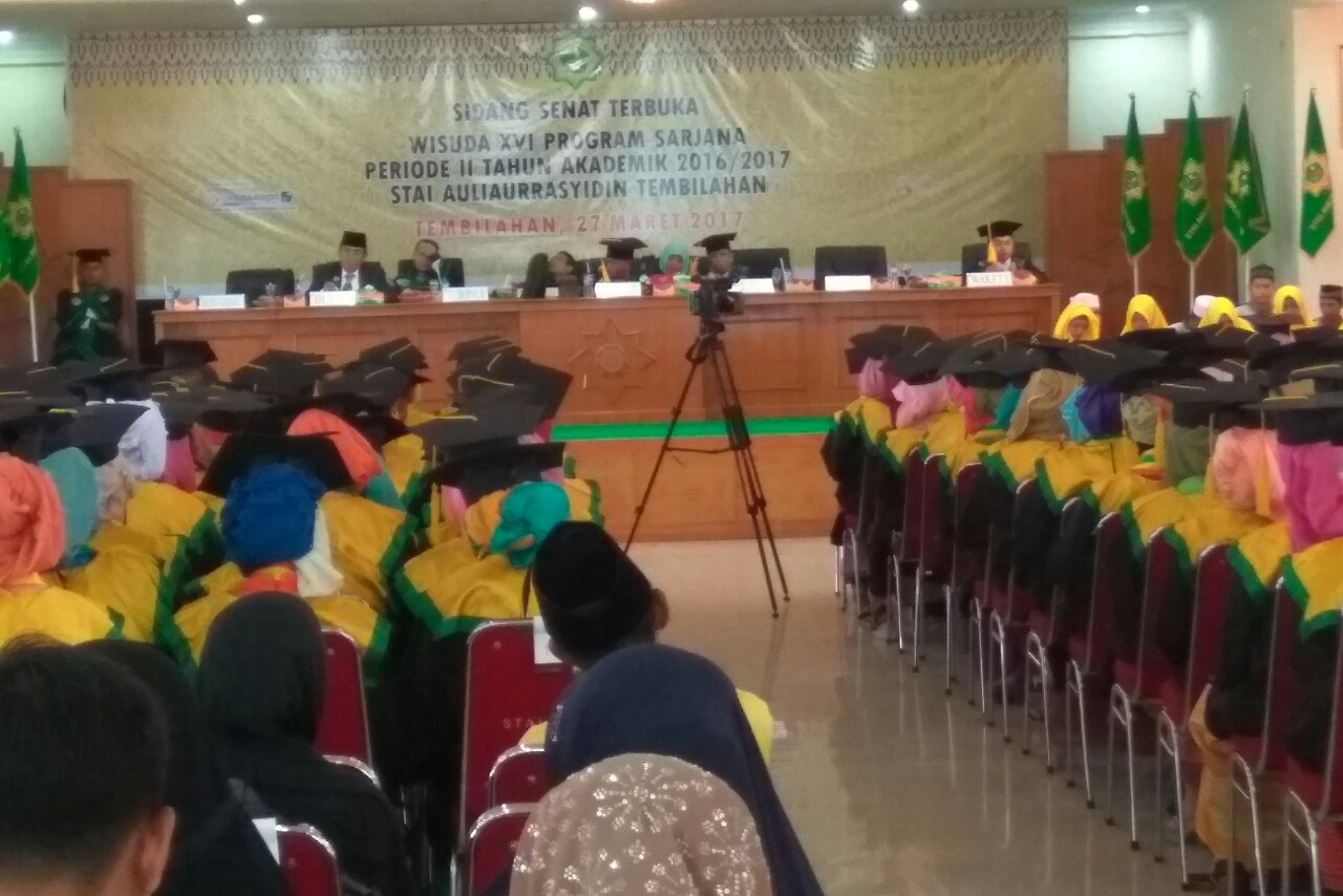 TEMBILAHAN (MR) - Sebanyak 177 mahasiswa STAI Auliaurrasyidin diwisuda pada Sidang Senat Terbuka Wisuda XVI Program Sarjana Periode II Tahun Akademik 2016/2017 di Gedung Abdurrahman Sidiq STAI Auliaurrasyidin Tembilahan Hulu, Senin (27/3/2017).