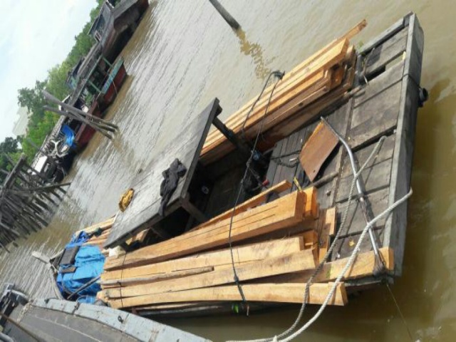 Adapun barang bukti yang berhasil diamankan dari kapal tanpa nama itu, 2 Ton kayu olahan.