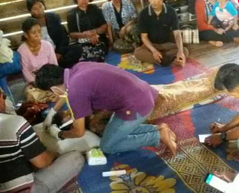 Tak lama kemudian, lanjut Paur Humas, korban masuk ke dalam rumah dan langsung mengambil pisau dan kain sarung motif batik serta mengikatkan ke balok yang melintang dalam rumah.