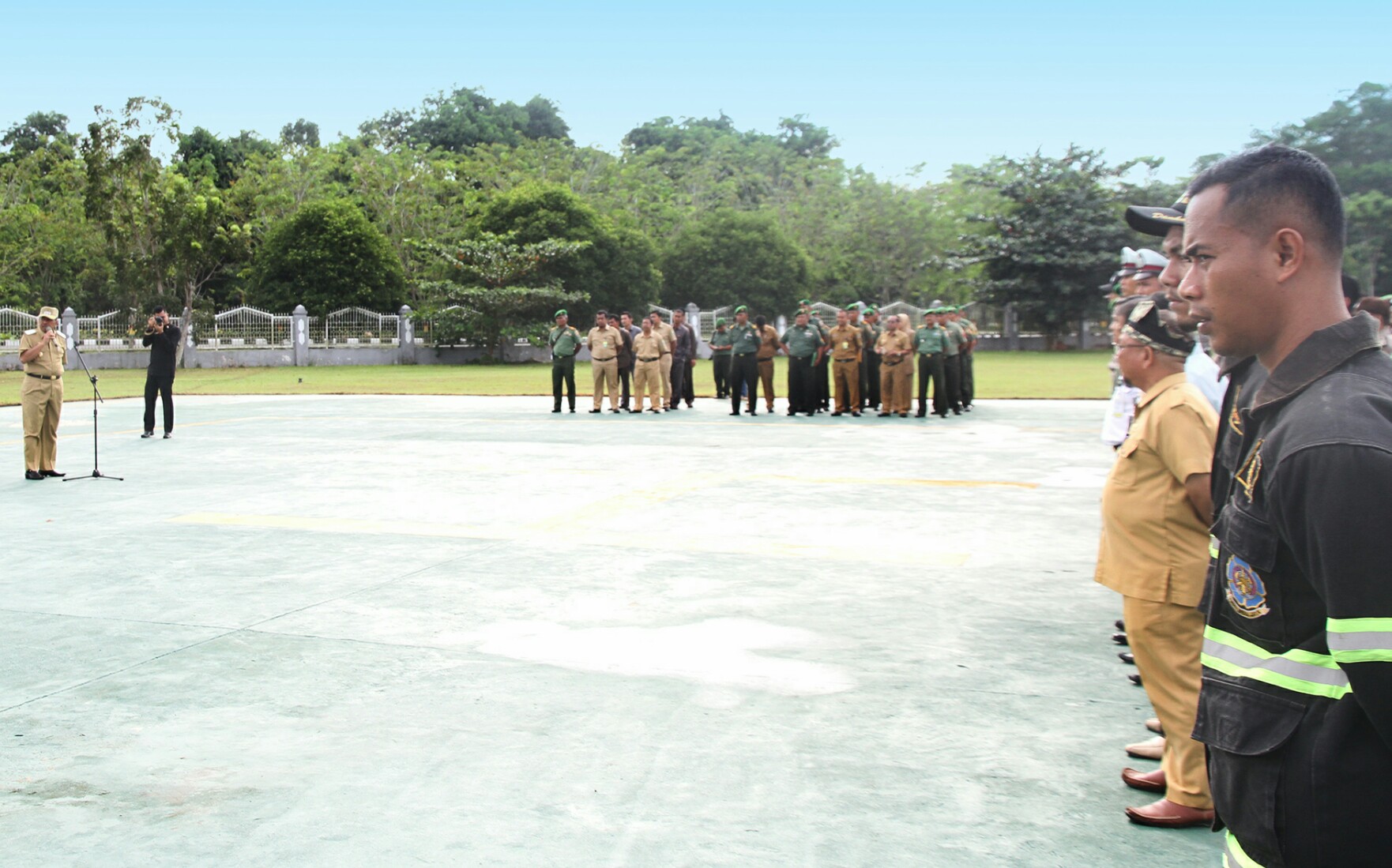 SIAK (MR) - Wakil Bupati Siak, Alfedri memimpin Apel Siaga menyambut kedatangan Panglima TNI Jenderal Gatot Nurmatyo di lokasi helipad halaman DPRD Siak, Senin (3/4/2017) pagi.