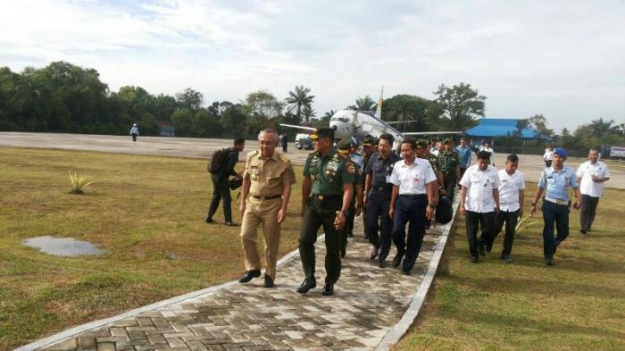 PEKANBARU (MR) - Sekitar pukul 7.50 WIB, pesawat TNI jenis Boing 737-4U3 yang membawa Panglima TNI Jendral Gatot Nurmantiyo mendarat di Pangkalan Undara (Lanud) Roesmin Nurjadin Pekanbaru.