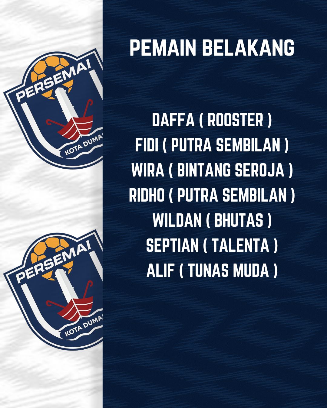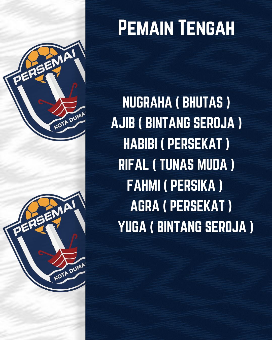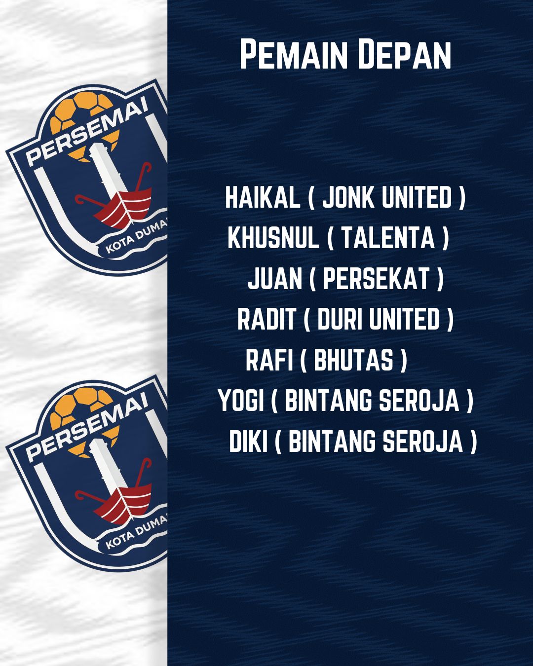 Sebanyak 150 pemain diseleksi dalam dua tahapan sehingga Selasa 28 April pagi tadi diumumkan melalui Akun Instagram Persemai Kota Dumai 23 pemain dinyatakan lolos seleksi.