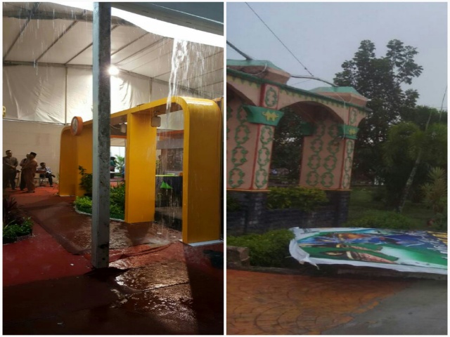 Badai dan Hujan Deras Terjang Kota dumai, Stand Pameran Berantakan