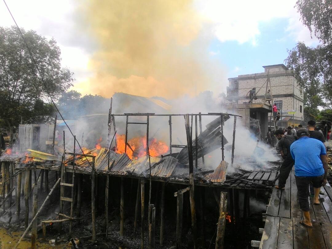 TEMBILAHAN (MR) - Sedikitnya 7 pintu rumah kontrakan di Pelabuhan Bandar Ega Parit 12 Desa Air Tawar Kecamatan Kateman dilalap api, Minggu (30/4/2017).