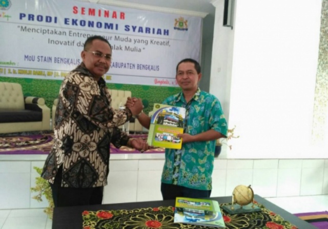 BENGKALIS (MR) - Sekolah Tinggi Agama Islam Negeri (STAIN) Bengkalis menjalin kerjasama dengan Kamar Dagang dan Industri (Kadin) Kabupaten Bengkalis sebagai upaya menciptakan entrepreneur di kalangan mahasiswa. Kerjasama ditandai dengan penandatanganan MoU antara Ketua STAIN Prof. Dr. H. Syamsul Nizar, MA dengan Ketua Kadin Masuri, SH, Kamis (4/5/2017).