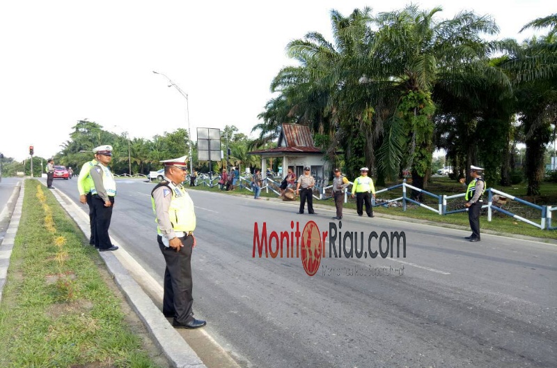 Mandau (MR) - Guna mempersempit ruang gerak pelarian ratusan Nara pidana (Napi) yang kabur pada Jum'at (5/5/17) dari Rumah tahanan (Rutan) Sialang Bungkuk, Pekanbaru sekira pukul 12.30 WIB, Puluhan personil gabungan Satuan Lalu lintas (Satlantas) Polres Bengkalis dan Polsek Mandau serempak menggelar razia dijalan lintas Duri - Dumai dan Pekanbaru.