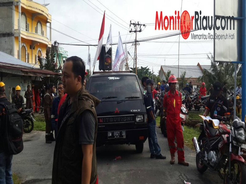 Ketua KSBSI DPC Raden Silalahi menambahkan sekitar Pukul 09.00 Wib massa sudah tiba di depan pintu masuk Pertamina RU II Sungai Pakning massa di stop tepat di depan pintu masuk Pos Perumahan Utama Pertamina Sungai Pakning yang dijaga oleh aparat keamananan dari pihak Security Pertamina RU II Sungai Pakning dibantu juga oleh pihak polsek Bukit Batu, Polsek Siak Kecil, Polres Bengkalis dan Koramil 07/Bukit Batu."sambungnya
