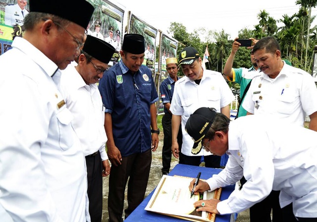INDRAGIRI HILIR (MR) - Bupati Indragiri Hilir (Inhil), HM Wardan, meresmikan program Desa Maju Inhil Jaya (DMIJ) 2016 di Kecamatan Reteh. Terobosan ini menjadikan daerah hamparan kelapa dunia tersebut menjadi bermarwah dan bermartabat.