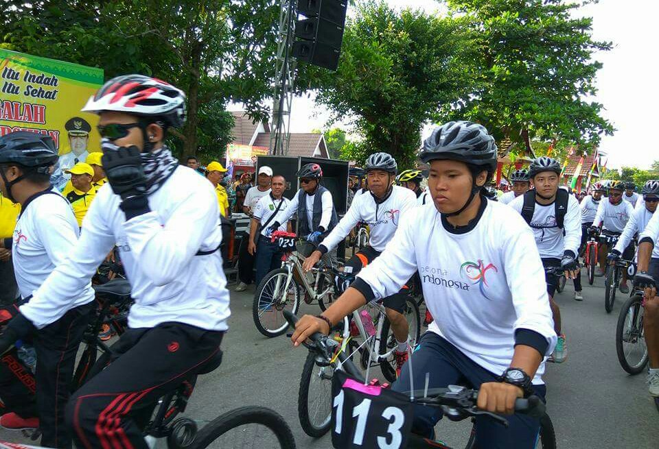 TEMBILAHAN (MR) - Sebanyak kurang lebih 300 peserta Jelajah Ekowisata Solop (JES) 2017 dilepas, Minggu (14/5/2017) di Jalan Swarna Bumi Tembilahan.