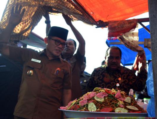Walikota Dumai Zulkifli AS bersama Plt Kepala BPOM Pekanbaru Drs Adrizal Apt saat melakukan inspeksi ke pasar kuliner Ramadhan di Dumai.(INFOTORIAL)