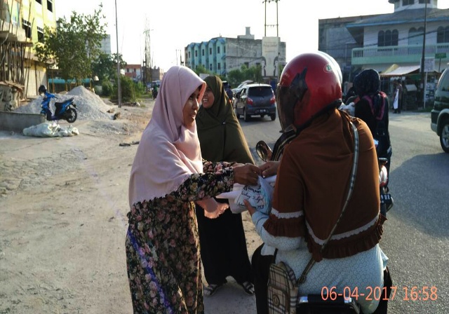 03_Ketua BPKK DPD PKS Dumai, Ibu Hj. Erlinda Husein sedang membagikan takjil ke warga,