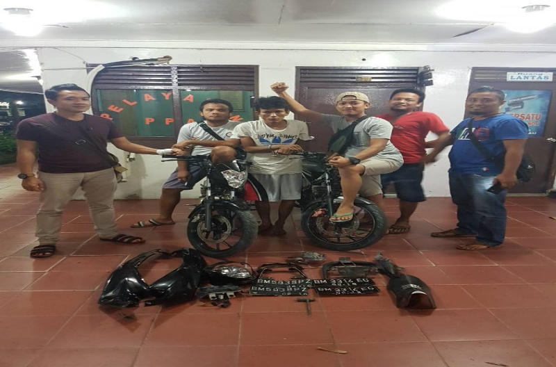MANDAU (MR) - Jajaran Opsnal Polisi Sektor (Polsek) Mandau berhasil membekuk pelaku spesialis Pencurian dengan pemberatan (Curat) kendaraan bermotor di Kota Duri, Kecamatan Mandau, Minggu (11/6/17) sekira pukul 23.00 WIB. DO (28) warga Jalan Kahyangan, Gang Pantau, Kelurahan Babussalam, Kecamatan Mandau, Bengkalis beserta barang bukti hanya bisa pasrah saat digelandang ke Mapolsek Mandau.