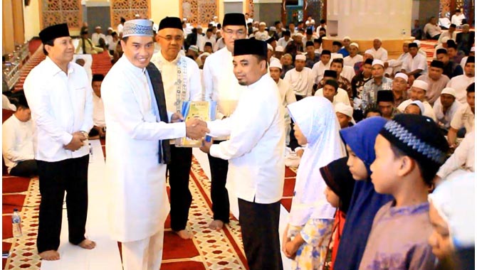 Bupati Rohul bersama Gubri saat safari ramadhan di Masjid Agung Nasional Islamic Center Rohul
