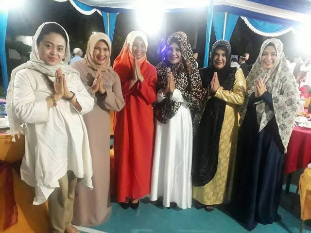DUMAI (MR) - Isteri Ketua DPRD Dumai Lenny Tio Maria Gusry Effendi menghadiri acara berbuka bersama di Komplek Pangkalan Angkatan Laut (Lanal) Dumai Jalan Yos Sudarso, Kamis (15/06/2017) sore.