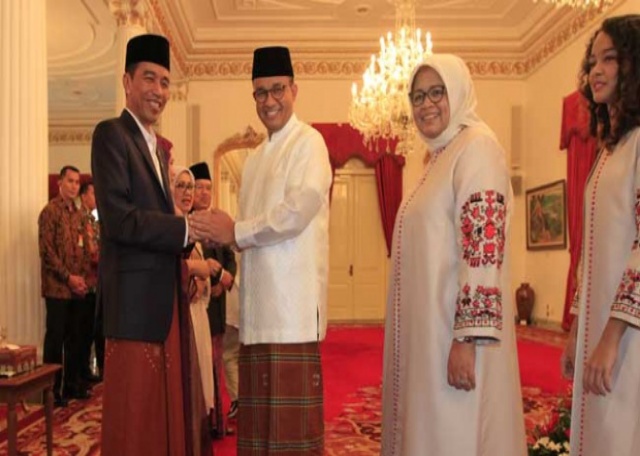 JAKARTA (MR) - Ada pemandangan menarik saat acara halal bihalal Presiden Jokowi di Istana Negara hari ini, Minggu 25 Juni 2017. Presiden Jokowi tersenyum lebar menerima para pejabat negara, duta besar negara sahabat, hingga masyarakat dalam 'Open House" di gedung yang dulunya dikenal sebagai sebutan Istana Rijswik itu. Dan diantara tamu-tamu, tampak Anies Baswedan, mantan Menteri Jokowi yang kini menjadi Gubernur DKI Jakarta Terpilih.