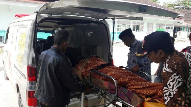 Jenazah Mulyadi ketika dimasukkan ke dalam Ambulance untuk diberangkatkan