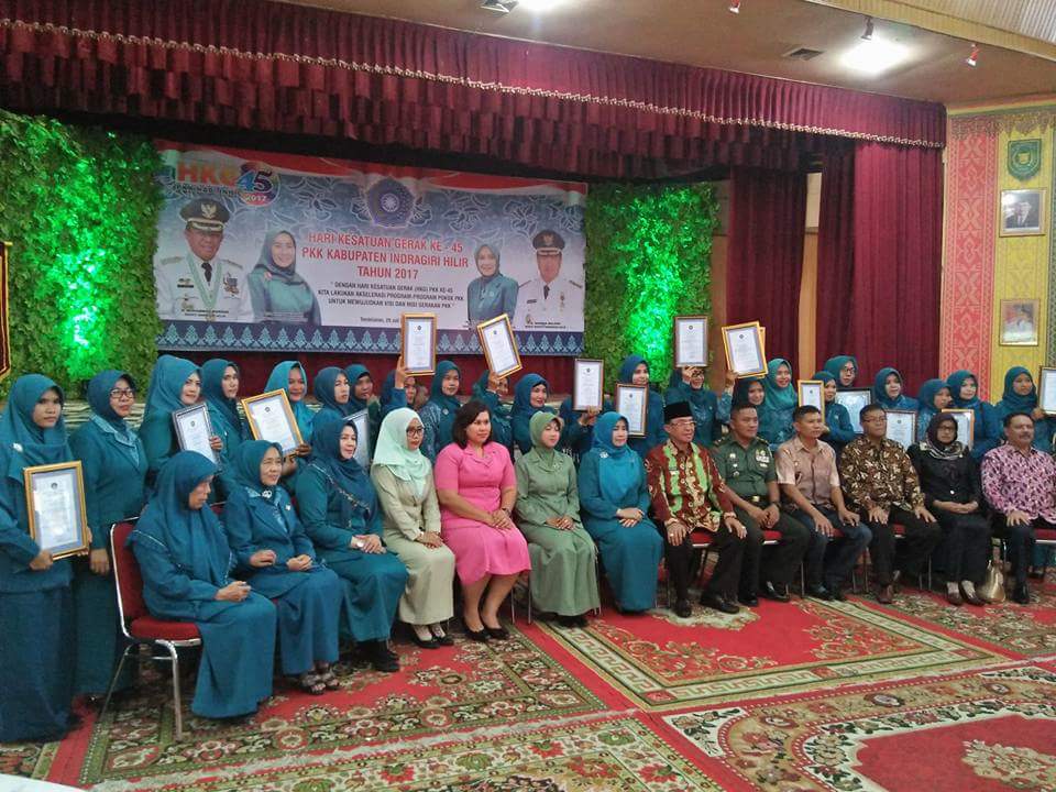 TEMBILAHAN (MR) - Bupati Indragiri Hilir (Inhil) HM Wardan menghadiri kegiatan puncak Jambore PKK ke-4 tahun 2017. Kegiatan yang disejalankan dengan peringatan Hari Kesatuan Gerak ke-45 ini berlangsung di Gedung Engku Kelana Tembilahan, Jum'at (28/7/2017).