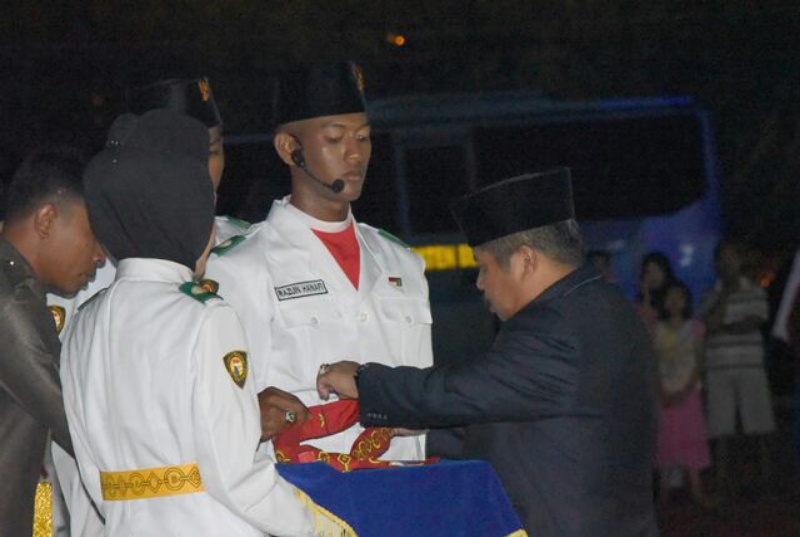 BENGKALIS (MR) - Setelah dididik dan dilatih kurang lebih tiga minggu lamanya, Selasa (15/8/2017) malam, 75 anggota Pasukan Pengibar Bendera (Paskibra) tingkat Kabupaten Bengkalis, secara resmi dikukuhkan Bupati Amril Mukminin.