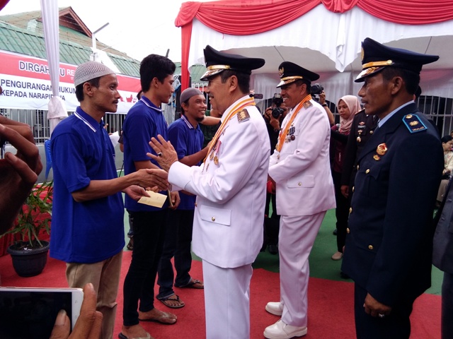 Surat Keputusan remisi dari Kemenkum HAM tersebut, diserahkan Bupati Siak secara simbolis di Rutan Siak.