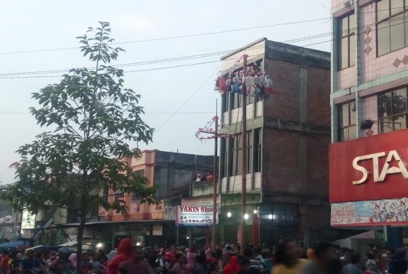 MANDAU (MR) - Dalam rangka merayakan HUT RI Ke 72 masyarakat Kecamatan Mandau benar - benar merayakan sangat meriah dalam pantauan dilapangan di jalan Sudirman yang merupakan pusat Kota Duri ada beberapa pohon pinang yang berdiri sehingga di jalan Sudirman yang terletak di pusat Kota Duri itu macet total.