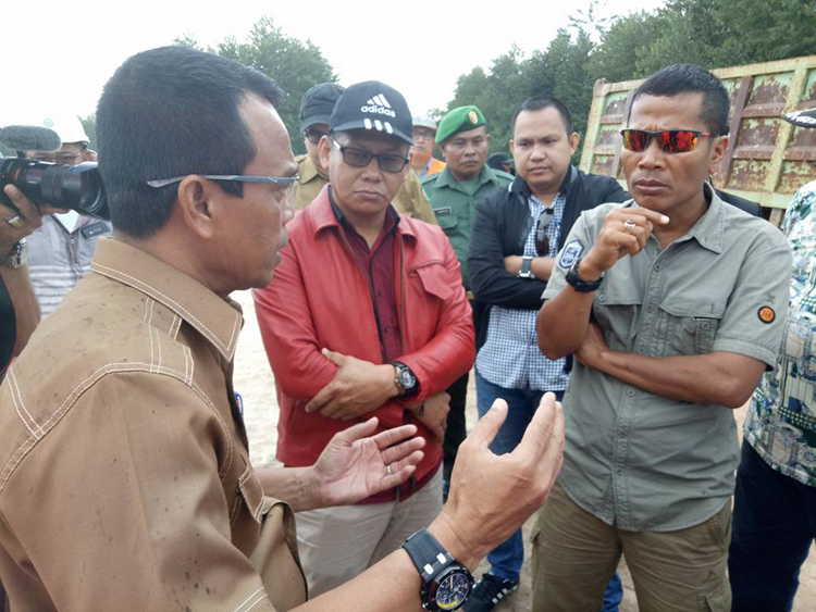 Ketua Fraksi PDI Perjuangan, Sofyan (red, jaket merah) saat melakukan peninjauan pembangunan jalan poros Duri - Sungai Pakning. Foto : Istimewa