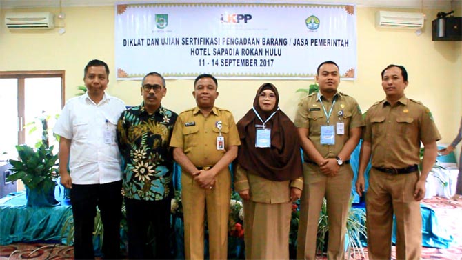 Diklat dan Ujian Sertifikasi Pengadaan Barang/ Jasa Pemerintah di salah satu hotel di Pasirpangaraian diprakarsai Bagian Pengadaan Barang dan Jasa Setdakab Rohul dibuka Asisten II Bidang Ekonomi, Pembangunan dan Kesejahteraan (Ekbang dan Kesra) Setdakab Rohul Ir. Muhammad Ruslan M.Si, Senin (11/9/2017), dan baru berakhir Kamis (14/9/2017).