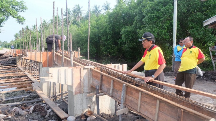 TEMBILAHAN (MR) - Bupati Indragiri Hilir (Inhil) HM Wardan melakukan peninjauan langsung pembangunan infrastruktur jalan dan jembatan di Kecamatan Pulau Burung, Ahad (24/9/2017) kemarin.