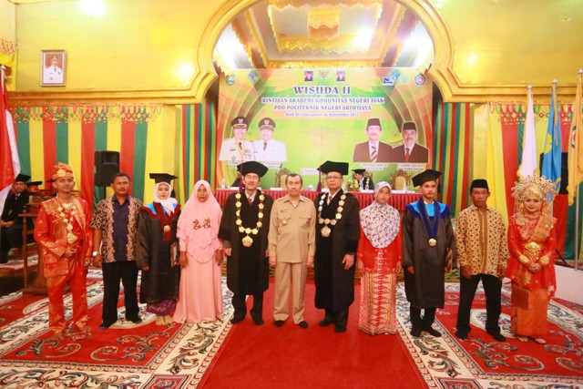"Kami menyambut gembira atas diwisudanya Mahasiswa D ll Teknik Kimia dan Teknik Mesin Rintisan Akademi Komunitas Negeri Siak PDD Politeknik Negeri Sriwijaya ini. AKN ini didirikan Pemkab Siak untuk memotivasi anak-anak jati Siak dalam menggapai impian masa depan. Dengan motivasi yang tinggi akan mendorong kemajuan diri," tegasnya.