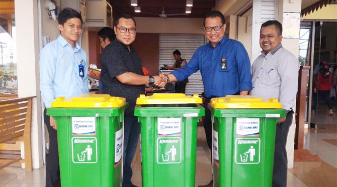 ROHUL (MR) - Sebagai bentuk kepedulian terhadap kebersihan lingkungan di Pasar Modern Pasirpengaraian, Kecamatan Rambah Kabupaten Rokan Hulu, Senin (25/9/2017) pagi, PT Bank Rakyat Indonesia (BRI) Kantor Cabang Pasir Pengaraian telah menyerahkan 3 unit Tong Sampah ke Pasar Modern.