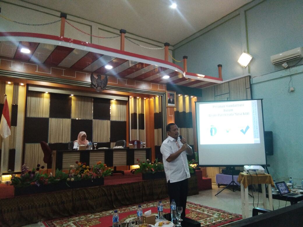 TEMBILAHAN (MR) - Dinas Pariwiasata Pemuda Olahraga dan Budaya (Disparporabud) menggelar sosialisasi standarisasi usaha pariwisata di salah satu Aula hotel kota Tembilahan, Rabu (18/10/2017).