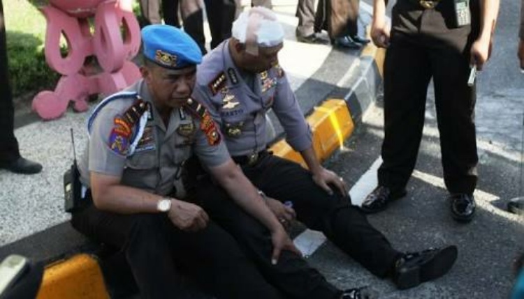 Beberapa mahasiswa tampak terluka di kepala, termasuk polisi. Bahkan Kapolresta Pekanbaru Kombes Susanto yang berdiri di depan aparat Sabhara turut jadi korban.