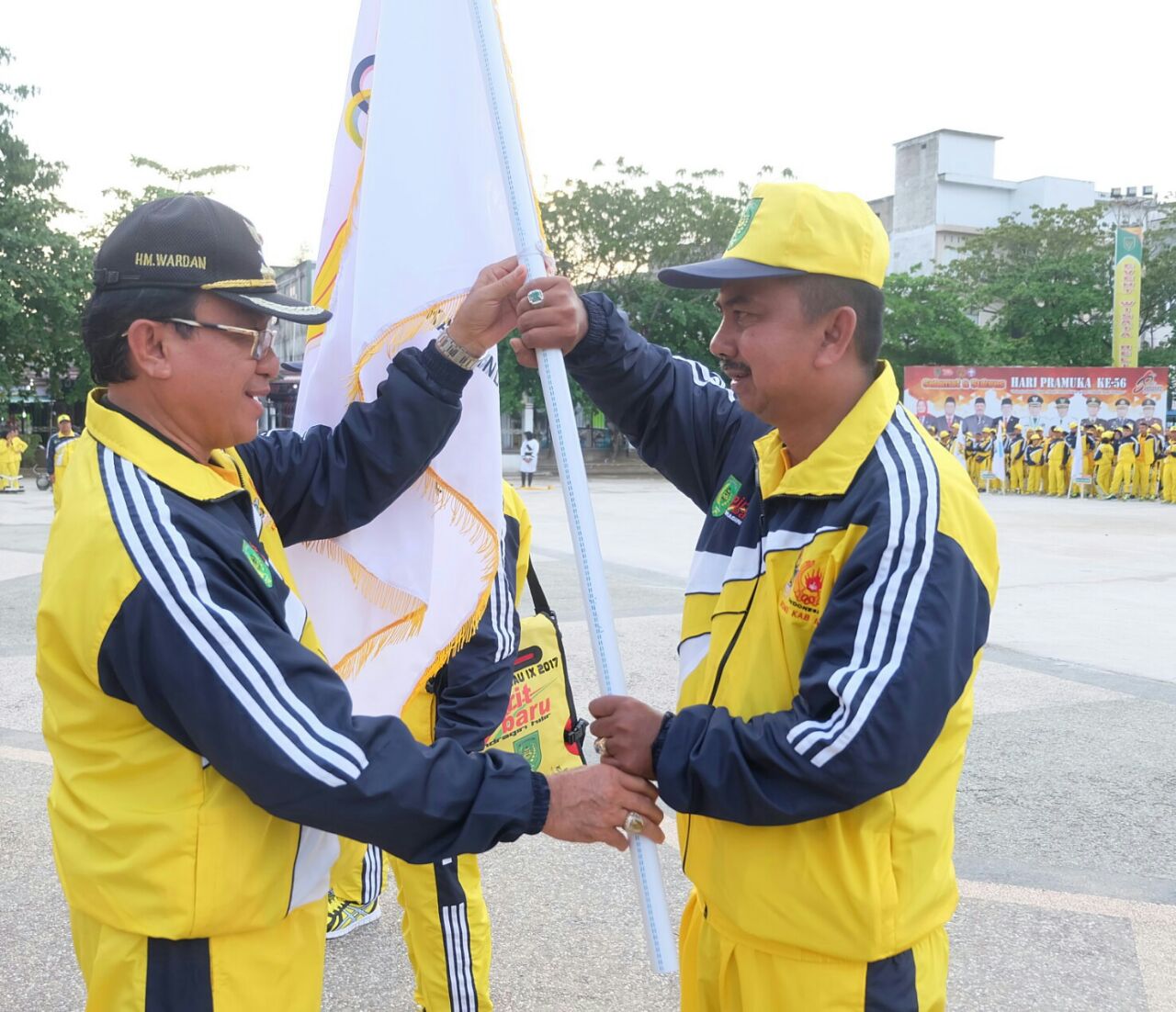 TEMBILAHAN (MR) - Bupati Indragiri Hilir (Inhil) HM Wardan melepas secara resmi kontingen Pekan Olahraga Provinsi (Porprov) IX Riau tahun 2017 di lapangan Gadjah Mada Tembilahan, Senin (23/10/2017) kemarin.