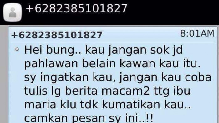 Sementara pesan singkat kepada Paul Hendri (jurnalis Metro Andalas) isinya hampir sama, namun Paul diancam akan “dimatikan.” Nomor ponsel tersebut ketika dihubungi tidak aktif.
