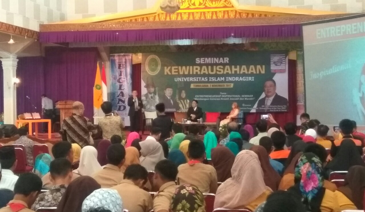 TEMBILAHAN (MR) - Universitas Islam Indragiri (Unisi) menggelar Seminar Kewirausahaan di Aula Gedung Puri Cendana Tembilahan, Kamis (2/10/2017).