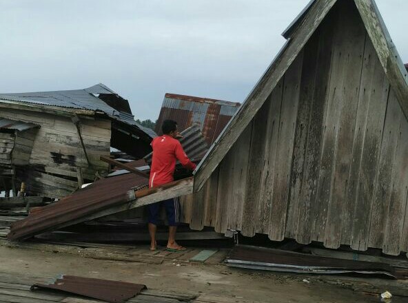 Diterjang Angin, Kantin Pasar Desa Teluk Bunian Ambruk