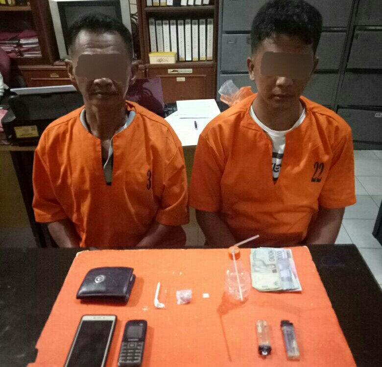 Dari pelaku disita barang bukti berupa 1 buah dompet merk Ripcuri yang didalamnya terdapat 1 paket sabu-sabu dibungkus plastik putih bening, 6 butir pil ekstasi warna merah muda merk mahkota, uang tunai sebesar Rp. 246.000, 1 set bong terbuat dari botol plastik, 2 buah tabung kaca pembakar, 2 buah mancis gas, 1 unit HP Xiaomi warna silver dan 2 unit HP Samsung.
