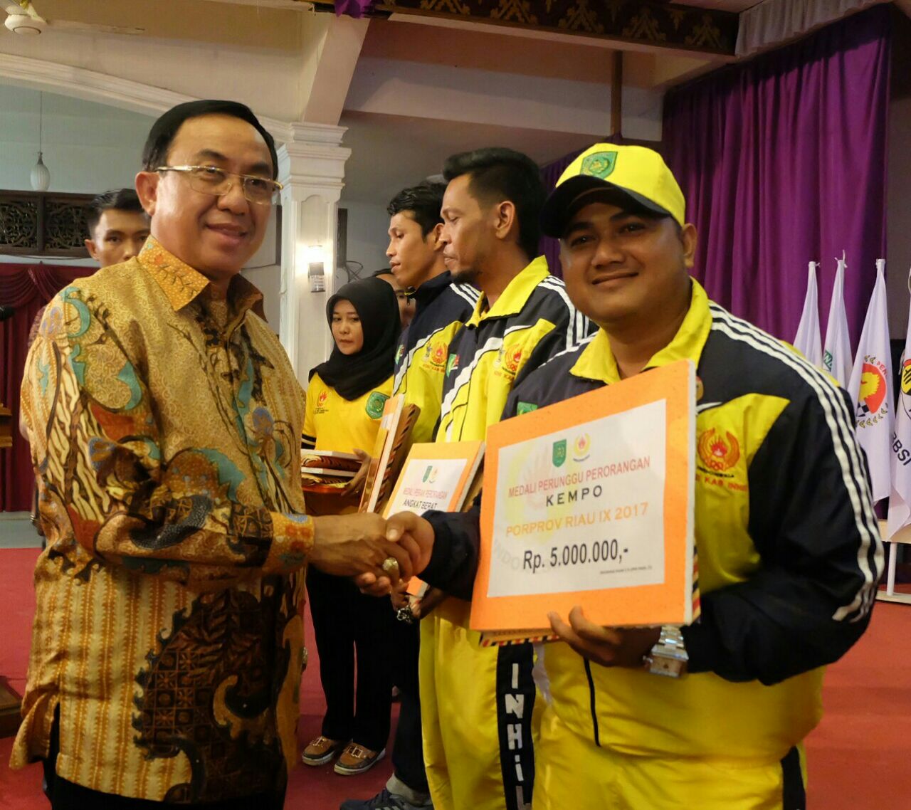 Bupati Inhil Berikan Reward Bagi Atlit Peraih Medali Porprov Ke-IX Kampar