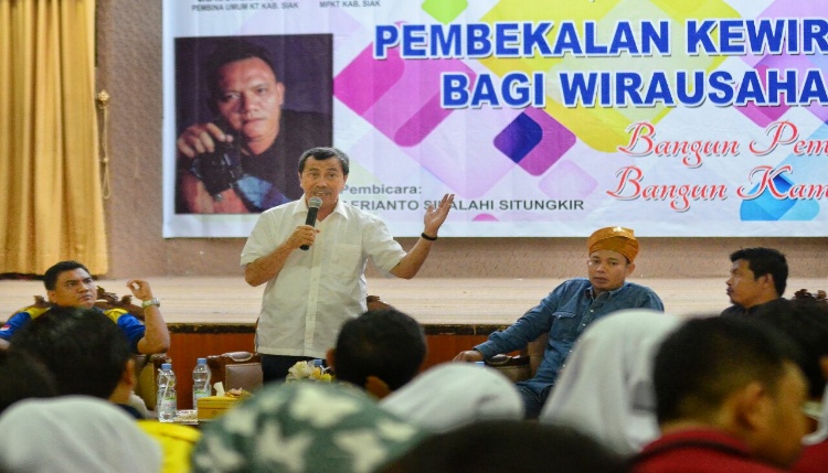 SIAK (MR) - "Anak muda zaman now harus mampu bersaing dan mau berpikir, sehingga menemukan peluang usaha/bisnis." Itu pesan Bupati Syamsuar dihadapan puluhan anak-anak muda, di gedung Tengku Mahratu Siak, Sabtu (2/12/2017) petang.