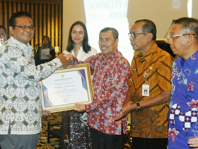 Penghargaan yang diserahkan sempena forum "Doing Business in Indonesia From Achievement to Sharing Best Practice" tersebut, diberikan oleh Lembaga Administrasi Negara (LAN) yang bekerjasama dengan lembaga asing Australia Indonesia Partnership for Economic Governance (AIPEG) di Aryaduta Hotel Jakarta (18/12/17).