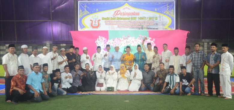 TEMBILAHAN (MR) - Ikatan Keluarga Besar Orgen Tunggal Tembilahan (IKBOT) menggelar Peringatan maulid Nabi Muhammad SAW 1439 H di Lapangan Futsal Tanjung Harapan, Senin (18/12/2017).