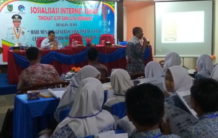 TEMBILAHAN (MR) - Diskominfo Kabupaten Indragiri Hilir (Inhil) menggelar sosialisasi Internet Sehat tingkat SLTP dan SLTA se-Kota Tembilahan, Rabu (20/12/2017).