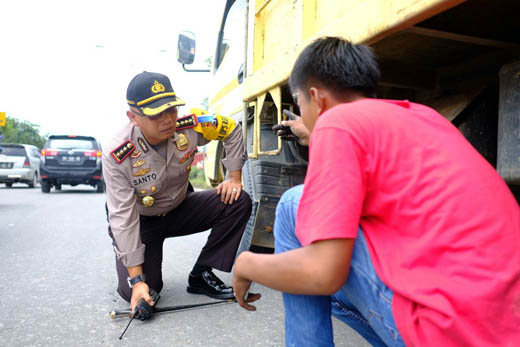 PEKANBARU (MR) - Demi memastikan suasana kondusif untuk masyarakat selama merayakan libur Natal dan Tahun Baru 2018, Kapolresta Pekanbaru, Kombes Pol Susanto turun meninjau langsung pos pengamanan (Pos Pam) di Jalan Garuda Sakti - HR Soebrantas dan pos pelayanan (Pos Yan) di Pelabuhan Sei Duku, Selasa (26/12/17) siang.