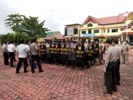 Untuk memastikan kesiapan, seluruh personel gelar latihan atau simulasi mengatasi bentrok Pilgubri Riau 2018 antara masyarakat dan penyelenggara pemilihan, Selasa (23/1/18) di halaman Mapolres Bengkalis.
