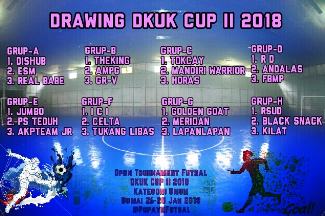 Grub F bakal diisi juara DKUK Cup musim lalu, Golden Goat bersama Meridan dan LapanLapan. Terakhir, RSUD, Black Snack dan Kilat FC berada di grub H.